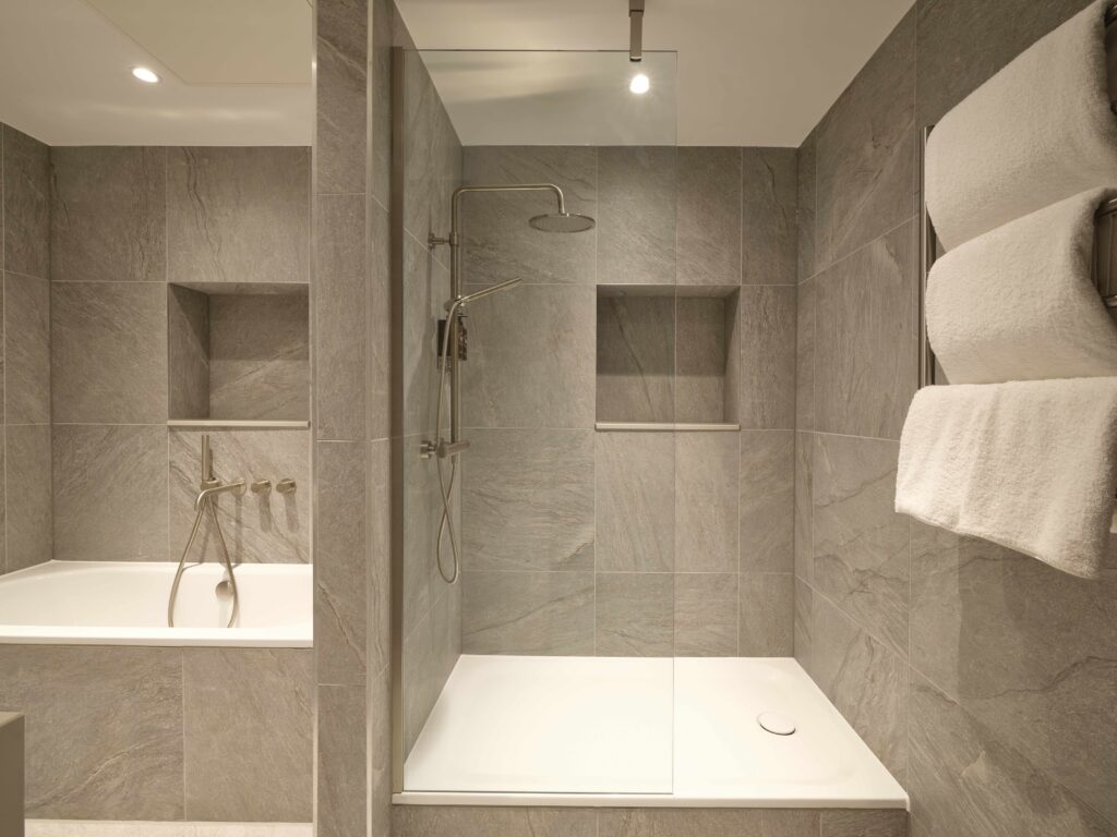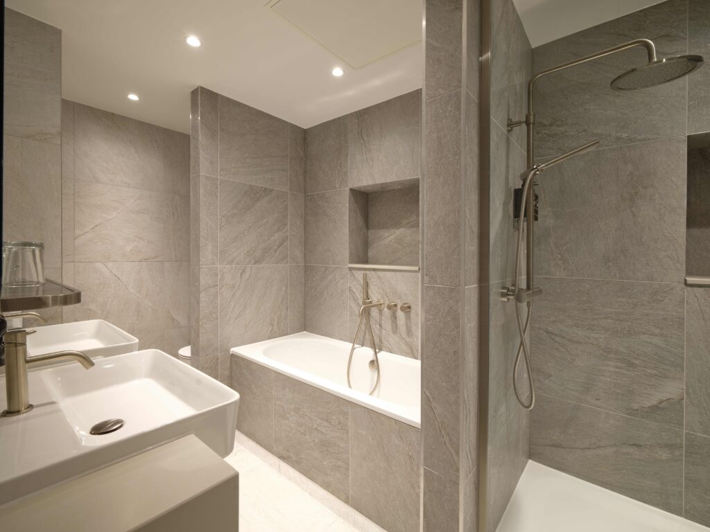 Our rooms are designed to feel like a stylish home away from home. Enter through a welcoming hall into a mini kitchen, leading to a multi-functional space for dining or working. Beyond lies the bedroom and vanity area, seamlessly connected to the ensuite. Each space is carefully crafted with your needs in mind. The generously sized beds, available as King, Super King, or Twin, are a bespoke design exclusive to The Resident, ensuring your comfort and relaxation.