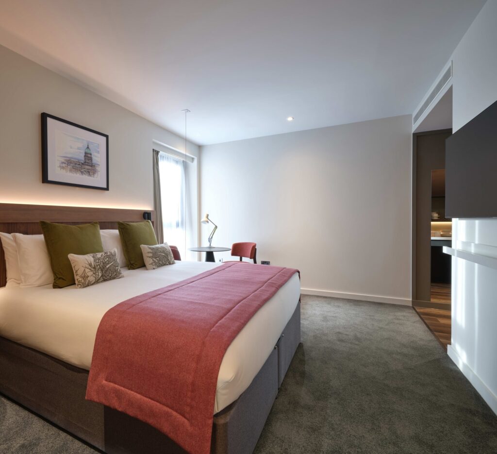 Thoughtfully designed with your comfort in mind, our Standard Double rooms are comprised of a plush pocket-sprung king sized bed and mini-kitchen, guaranteeing a great night’s sleep.