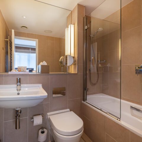 Our Deluxe rooms, approximately 22m2, are designed with style and comfort in mind. The rooms include a pocket-sprung super king bed and the option for an additional complimentary sofa bed or two pull-out beds which can be added on request. The rooms have spacious bathrooms with a powerful shower (walk-in or over bath). You will also find one of our signature mini-kitchens with a fridge, microwave, kettle, BRITA filter tap, Nespresso coffee machine and complimentary teas and coffee. Enjoy interactive HD TVs , versatile dining / work tables with handy USB and power points making our rooms your home away from home.