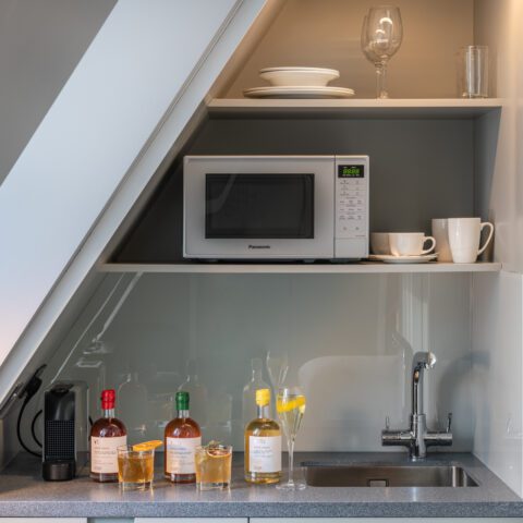 Our King rooms, approximately 17.5m2, are designed with style and comfort in mind. The rooms include a pocket-sprung super king bed with spacious bathrooms and a powerful shower (walk-in or over bath). You will also find one of our signature mini-kitchens with a fridge, microwave, kettle, BRITA filter tap, Nespresso coffee machine and complimentary teas and coffee. Enjoy interactive HD TVs (able to stream content direct from mobile devices), versatile dining / work tables with handy USB and power points making our rooms your home away from home.