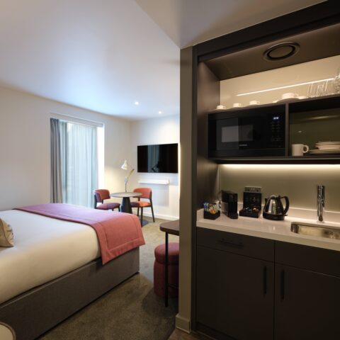 Feel at home in our well-appointed King room, tastefully designed to strike a careful balance between style and uttermost comfort, ensuring an outstanding night’s sleep. Our King rooms are from 20m2 and are divided into a series of tranquil spaces. The room begins with a designated entryway to hang your coat and store shoes, maintaining the cleanliness and sanctity of your bedroom. Travel through your bedroom, where everything has its place, whether this be The Resident’s signature mini-kitchen or en-suite bathroom, each nestled away to maintain a sense of privacy and intimacy in your sleeping area.
