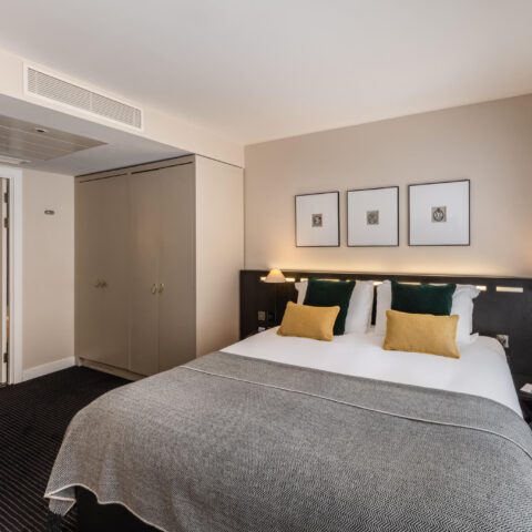 Our Standard Double Rooms offer a pocket-sprung king bed and a spacious bathroom with a powerful shower. Each room includes a thoughtfully designed in-room mini-kitchen fitted with a fridge, microwave, Brita-filtered water tap, and Nespresso machine, along with Molton Brown toiletries and a GHD hairdryer, ensuring your stay feels both effortless and comfortable.