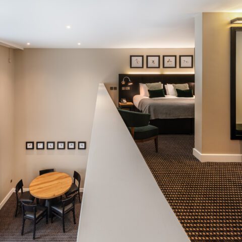 Our Secret Garden Suite, approximately 67m2, is designed with ultimate style and comfort in mind. The suite is split over two levels with an open plan mezzanine, ensuring plenty of privacy, and also has a private outdoor terrace to enjoy a drink of any kind! The room includes a pocket-sprung super king bed or two single beds, and the option for an additional two complimentary pull-out beds on the ground floor and an extra pull-out bed on the mezzanine, which can be added on request. The suite has a spacious bathroom on the lower floor, complete with a powerful, walk-in shower and shower over bath. You will also find one of our signature mini-kitchens with a fridge, microwave, kettle, Nespresso coffee machine and complimentary teas and coffee. Enjoy interactive HD TVs (able to stream content direct from mobile device), versatile dining/work tables with handy USB and power points, making our rooms your home away from home.