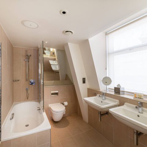 Our Superior rooms, approximately 19m2, are designed with style and comfort in mind. The rooms include a pocket-sprung super king bed or two single beds with the option for an additional complimentary pull-out bed which can be added on request. The rooms have spacious bathrooms with a powerful shower (walk-in or over bath). You will also find one of our signature mini-kitchens with a fridge, microwave, kettle, BRITA filter tap, Nespresso coffee machine and complimentary teas and coffee. Enjoy interactive HD TVs, versatile dining / work tables with handy USB and power points making our rooms your home away from home.