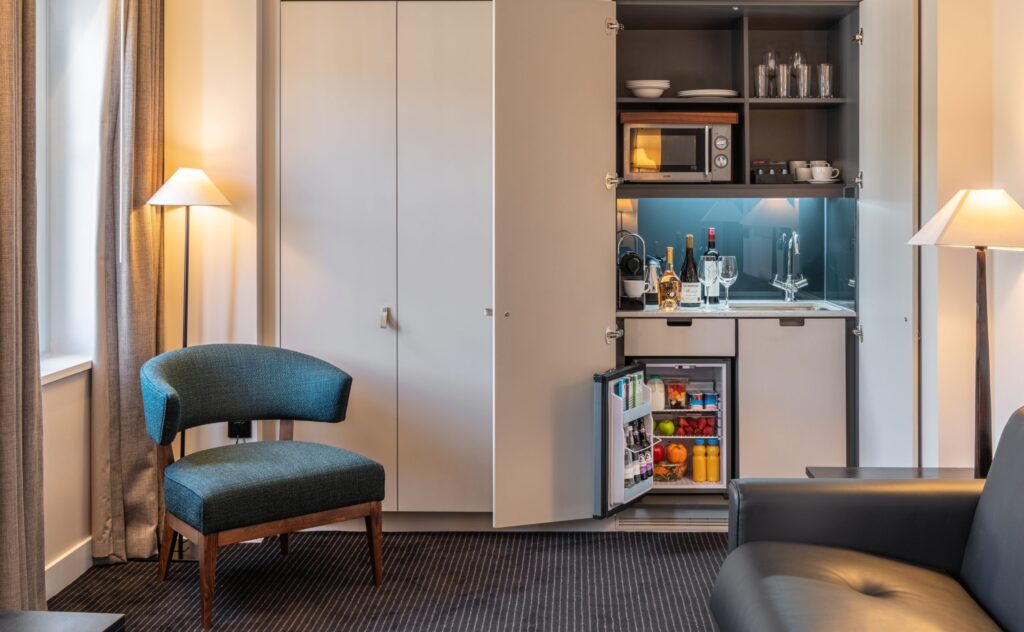 With 78 rooms spread across 7 different room types, pick the best for you! With small doubles offering a cosy, great value for money room to our Carlisle Suite where you will experience a relaxed stay with superb views of Soho Square. Each of our rooms is furnished with elegant, hand-made furniture, produced locally in West London, and plush fabrics made using natural fibres woven on the Isle of Bute, Scotland. Each room features our signature mini-kitchen, as well as stylish touches, including bespoke artwork and special edition Paul Smith Anglepoise lamps, which echo our focus on quality British design and craftsmanship. With Nespresso machines and Brita filter taps, you can relax in your room with home comforts to enjoy.